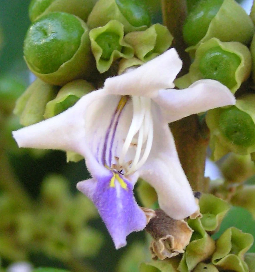 | rainforest trees | Gmelina leichhardtii | White Beech | Beautiful semi-deciduous tree to 40 m. Purple and white flowers in spring and summer. Masses of large purple-blue fruits in autumn. Great shade tree. | ![]() |